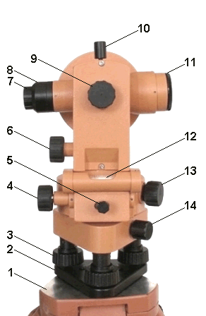 Рис. 41. Устройство теодолита 4Т30П: Для установки, настройки и наведения теодолита на цели в нем имеется система винтов: становой и подъемные винты, закрепительные (зажимные) и наводящие (микрометренные) винты, исправительные (юстировочные) винты. Становым винтом теодолит крепят к головке штатива, подъемными винтами – горизонтируют. Закрепительными винтами скрепляют подвижные части теодолита (лимб, алидаду, зрительную трубу) с неподвижными. Наводящими винтами сообщают малое и плавное вращение закрепленным частям. Чтобы теодолит обеспечивал получение неискаженных результатов измерений, он должен удовлетворять соответствующим геометрическим и оптико-механическим условиям. Действия, связанные с проверкой этих условий, называют поверками. Если какое-либо условие не соблюдается, с помощью исправительных винтов производят юстировку прибора. Date: 2015-09-19; view: 1013; Нарушение авторских прав |