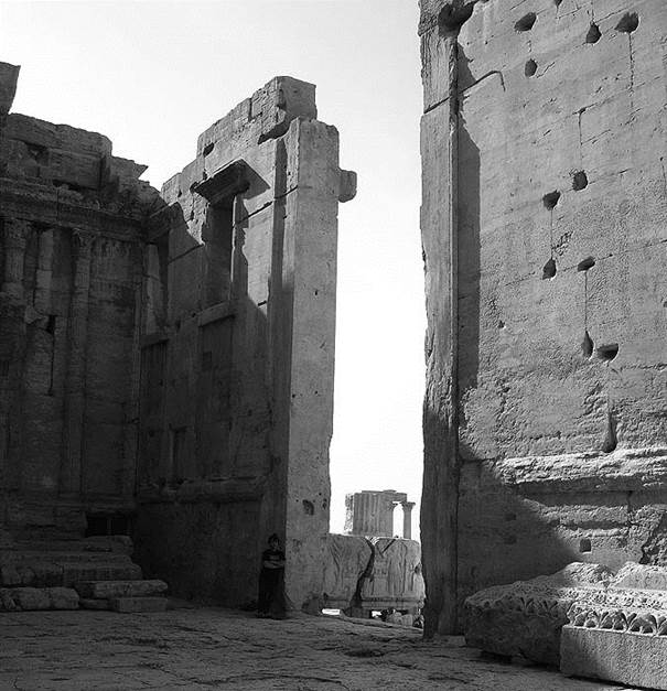 Стены, окружающие двор храма Баала, собраны из блоков небольшого и среднего размера, которые мегалитами в полном смысле этого слова назвать нельзя. Стены самого храма также сделаны из блоков аналогичного размера. Но вот в качестве стоек ворот на входе в храм по какой-то непонятной причине строители решили использовать монолитные гиганты высотой в семь с лишним раз больше человеческого роста.