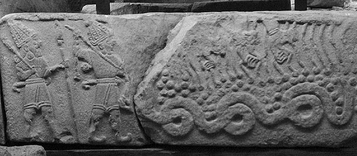 Рис. 94. Бог грозы побеждает змея Иллуянки Подобное сходство двух мифологий дает все основания надеяться обнаружить в Анатолии следы цивилизации древних богов, аналогичные тем, что описаны ранее. Дополнительную надежду дает и гораздо более древняя мифология еще одного региона – мифология Шумера. В древних шумерских мифах упоминается некая далекая сказочно богатая страна Аратта, в которую можно было попасть, только преодолев высокие горы. Здесь было много золота, серебра и лазурита. Жители этой страны слыли мастерами по обработке металла и камня и могли на кораблях приплывать в шумерские города, расположенные на реках Тигр и Евфрат. По одной из версий, Аратта располагалась на северо-западе Ирана. Однако описания гораздо больше подходят к совершено другому региону – как раз к Анатолии на территории современной Турции. В этой сказочной стране Аратта, как указывается в преданиях, находился дом богини Инанны. А Инанна – это та же Иштар (Астарта), которая входила в том числе и в пантеон хеттских богов… Date: 2015-09-19; view: 517; Нарушение авторских прав |