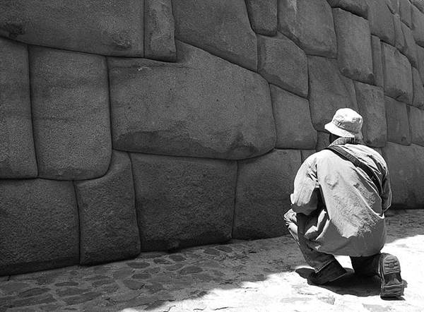 Рис. 103. Полигональная мегалитическая кладка в Куско (Перу) Сходство даже в деталях не просто поражает, оно – убивает!.. Ведь где Турция, и где Перу?.. Это противоположные точки земного шара. Вдобавок, кладка в Аладже-хююке приписывается историками к периоду Хеттской империи (II тысячелетие до нашей эры), а кладка в Куско – к временам империи инков (середина II тысячелетия нашей эры). Между двумя цивилизациями не только десятки тысяч километров, материки и океаны, но и три тысячи лет!.. Историки могут сколько угодно рассуждать о конвергенции культур, о каких-то общих приемах, возникающих на разных континентах совершенно независимо друг от друга, и тому подобном. Здесь абсурдность и бессмысленность подобных рассуждений становится совершенно очевидной. Сходство кладки в двух случаях настолько велико, что о независимости ее возникновения в этих местах говорить просто категорически нельзя. При создании сооружений в Аладжа-хююке и Куско явно использовалась одна и та же технология, одни и те же методы обработки камня, одни и те же строительные приемы, одна и та же инженерная логика. Все указывает на то, что строители должны были быть одними и теми же. Пусть не в прямом смысле этого слова (маловероятно, что одна и та же бригада перебрасывалась с места на место), но то, что это дело рук представителей одной и той же цивилизации, – вне всяких сомнений. Покажи без комментариев фотографии из Аладжа-хююку человеку, который там не был, и он тут же скажет, что это фотографии из Перу…