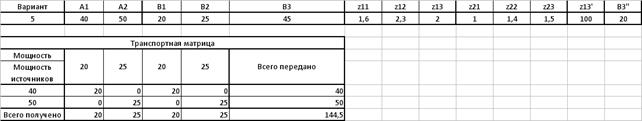 Согласно методу решения вводим соответствующие изменения в транспортную матрицу задания 3 (рис. 16).