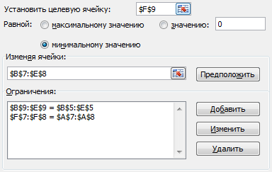 Вид окна расчета с помощью надстройки «Поиск решений» представлен на рисунке 17.