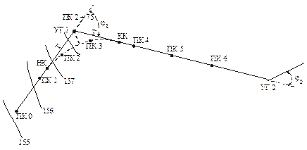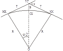 где K – длина кривой (длина дуги от начальной точки кривой до ее конечной точки). Пикетажное расстояние начала кривой