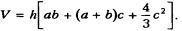 где hab - объем котлована без учета откосов; h(a+b) - объем котлована над откосами без учета углов; с - горизонтальная проекция откосов; 4h/3*c2- объем котлована над откосами в углах. Для удобства подсчета эту формулу можно привести к следующему виду: