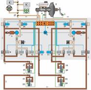 Система курсовой устойчивости имеет следующее устройство: входные датчики; блок управления; гидравлический блок.