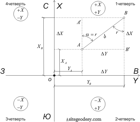 Решение обратной геодезической задачивыполняется в следующем порядке: 1) вычисляют приращения координат