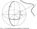 Для того чтобы после проецирования определить положения проекций на фигуре Земли, в геодезии используется несколько систем координат. Географическая система координат служит для определения положения проекций точек на сферической поверхности. Началом счета являются нулевой меридиан и нулевая параллель. Меридиан – линия пересечения поверхности фигуры Земли с плоскостью, проходящей через ее ось вращения. Параллель – линия пересечения поверхности фигуры Земли с плоскостью, перпендикулярной ее оси вращения. За нулевой меридиан принимается Гринвичский, за нулевую параллель – параллель наибольшего диаметра, называемая экватором. Положение точки определяется тремя величинами: λ – долготой, φ – широтой, Η – абсолютной высотой. Долгота и широта точек определяются по градусной сетке на картах. Долгота – это двугранный угол между плоскостью нулевого меридиана и плоскостью меридиана данной точки. Долготы считаются от Гринвича на запад и на восток, называются «западная» и «восточная» и изменяются от 0˚ до 180˚. Широта - угол между отвесной линией в данной точке и плоскостью экватора. Отсчитываются широты от экватора на север и юг, называются «северными» и «южными» и изменяются от 0˚ до 90˚.