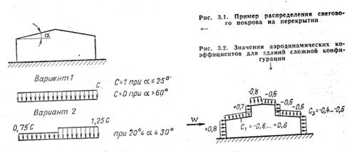 Значения коэффициента с зависят от очертания покрытия и приведены в нормах на проектирование. Ветровая нагрузка устанавливается на основании данных гидрометеорологических станций о скорости ветра на высоте 10 м от поверхности земли. По этим данным скоростные напоры ветра определяют по формуле: