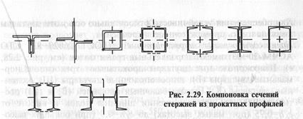 В строительных конструкциях применяют в основном прокатную сталь, поставляемую с металлургических заводов в виде профилей различной формы поперечного сечения. Для стальных конструкций используют листовую и профильную сталь. Профильную сталь подразделяют на сортовую (круг, квадрат, полоса, уголки) и фасонную (двутавры, швеллеры и другие фасонные профили). Кроме того, широко применяют вторичные профили: сварные, получаемые сваркой полос или листов, и гнутые, образованные холодной гибкой полос и листов (рис. 2.28).