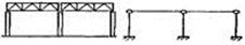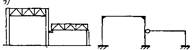 В многопролетных цехах с пролетами разной высоты возможны решения, при которых часть узлов проектируется жесткими, а часть — шарнирными (рис. в).