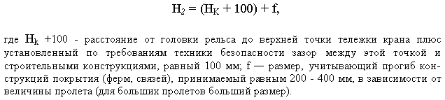 Габариты мостовых кранов даются в соответствующих стандартах и заводских каталогах. Окончательный размер H2 принимается обычно кратным 200 мм. Высота цеха от уровня пола до низа стропильных ферм: