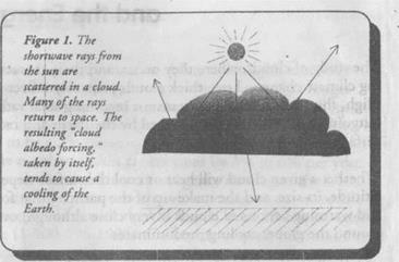 Исследование облаков, где они происходят, и их особенности, может хорошо быть центральным ключом к пониманию изменения климата. Низко, густые облака прежде всего отражают солнечное излучение и охлаждают поверхность Земли. Высокие, тонкие облака прежде всего передают поступающее солнечное излучение; в то же самое время они заманивают часть в ловушку коммуникабельной инфракрасной радиации, испускаемой Землей, и излучают это назад вниз, таким образом нагревая поверхность Земли. Нагреется ли данное облако или охладится, поверхность зависит от нескольких факторов, включая высоту облака, ее размер, и состав частиц, которые формируют облако. Баланс между охлаждением и нагреванием действий облаков очень близок, хотя, в целом, составляя в среднем эффекты всех облаков во всем мире, охлаждение преобладает. Система климата Земли постоянно приспосабливается в пути, который склоняется к поддержанию баланса между энергией, которая достигает Земли от солнца и энергии, которая идет от Земли, отступают, чтобы сделать интервалы. Ученые именуют это как “радиационный бюджет Земли.” Компоненты Земной системы, которые важны для радиационного бюджета, являются поверхностью планеты, атмосферой, и облаками. Энергию, прибывающую от солнца до поверхности Земли, называют солнечной энергией. Большая часть из этого находится в форме радиации от "видимых" длин волны, то есть, ответственные за свет, обнаруженный нашими глазами. Видимая радиация и радиация с более короткими длинами волны, такими как ультрафиолетовое излучение маркированы "короткая волна". И количеством энергии и длинами волны, в которых энергия испускается любой системой, управляет средняя температура поверхностей излучения системы плюс свойства эмиссии. Температура поверхности излучения солнца, или фотосфера, является больше чем 5500°C (9900°F). Однако, не вся энергия солнца прибывает в Землю. Энергия солнца испускается во всех направлениях с только небольшой частью, являющейся в направлении Земли. Энергия возвращается, чтобы сделать интервалы от Земной системы двумя способами: отражение и эмиссия. Часть солнечной энергии, которая прибывает в Землю, отражена, отступают, чтобы сделать интервалы в том же самом, коротких длинах волны, в которых это прибыло в Землю. Фракцию солнечной энергии, которая отражена назад, чтобы сделать интервалы, называют альбедо. У различных частей Земли есть различные альбедо. Например, у океанских поверхностей и дождевых лесов есть низкие альбедо, что означает, что они отражают только небольшую часть энергии солнца. У пустынь, льда, и облаков, однако, есть высокие альбедо; они отражают значительную часть энергии солнца. По целой поверхности Земли приблизительно 30 процентов поступающей солнечной энергии отражены назад, чтобы сделать интервалы. Поскольку у облака обычно есть более высокое альбедо чем поверхность ниже этого, облако отражает больше коротковолновой радиации назад, чтобы сделать интервалы, чем поверхность была бы в отсутствие облака, таким образом оставляя меньше солнечной энергии, доступной, чтобы нагреть поверхность и атмосферу. Следовательно, это “принуждение альбедо облака,” взятый отдельно, имеет тенденцию вызывать охлаждение или “отрицательное принуждение” климата Земли. Коротковолновое отражение облаками иллюстрировано в рису