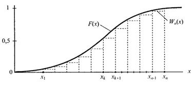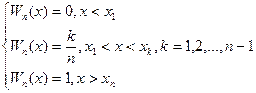 Емпірична функція стрибком змінює свої значення в точках x=xk на
