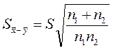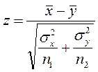 Значення z порівнюють із критичним значенням Для випадку з невідомими СКВ генеральних сукупностей. У цьому разі визначають емпіричне значення s і використовують статистичну характеристику