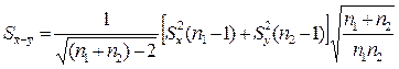 Зважаючи на те, що вибірки взято з однієї генеральної сукупності, доцільно скористатися всіма наявними експериментальними даними, тобто розглядати вибірку обсягом п1 + п2. Це дає змогу підвищити статистичну надійність знайденої оцінки СКВ генеральної сукупності. Тоді