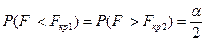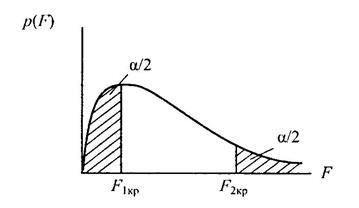 Порівняння двох дисперсій. Другою важливою ознакою, за якою можуть порівнюватися дві сукупності, є дисперсії в кожній із них. Гіпотези про дисперсії відіграють важливу роль у техніці, оскільки саме дисперсія характеризує такі важливі конструкторські й технологічні показники, як точність приладу, похибку результату, точність технологічного процесу тощо. При спільній обробці результатів необхідно, насамперед, переконатися в тому, що умови проведення дослідів, при яких отримані результати, були однаковими. З цією метою можна використати оцінку розбіжності дисперсій. F-критерій (розподіл Фішера). Припустимо, що задано дві генеральні сукупності X та Y з нормальним розподілом X Математик-статистик Р. Фішер установив, що відношення незсунених оцінок двох дисперсій підпорядковується закономірності, що залежить від кількості ступенів свободи цих дисперсій. Припускаючи, що Критична область буде тільки правобічна і визначається умовою. Значення Якщо Іноді перед обробкою даних необхідно переконатися в однорідності дисперсій, отриманих на підставі даних двох експериментальних вибірок. У цьому випадку також використовується критерій Фішера. Відмінністю є те, що альтернативна гіпотеза