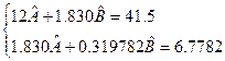 Тепер обчислюємо значення коеффіцієнтів рівняння регресії за формулою