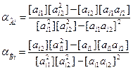 де А і В - оцінки параметрів, що відшукуються аі1=1, аі2=(Rz)і, li=Δi. Приклади обчислення коефіцієнтів у системі наведені в таблиці 2. Таким чином, Для системи нормальних рівнянь одержуємо: