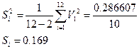 Визначення цих коефіцієнтів зручно обчислювати, як показано в таблицях 3, 4, 5. Тепер за формулою Оцінка для дисперсії похибок складає