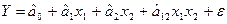 Далі за таблицею розподілу Фішера для рівня значущості α=0,05 число ступенів свободи f ag= N -1 =1 і f N (g-1)=40 знаходимо Ймовірною причиною неадекватності моделі може бути неврахування взаємодії x1 x2. Після введення цієї взаємодії в рівняння регресії воно одержує вигляд