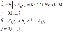 Будемо вважати, що коефіцієнт bj значущий, якщо відповідний довірчий інтервал захоплює нуль, тобто якщо: