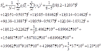 Оцінимо адекватність одержаної моделі. Розрахуємо дисперсію адекватності: