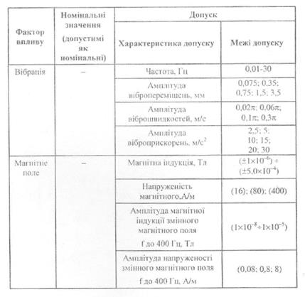 Додаток 5 Таблиця номінальних значень найпоширеніших факторі впливу та їх меж для нормальних умов застосування засобів вимірювальної техніки
