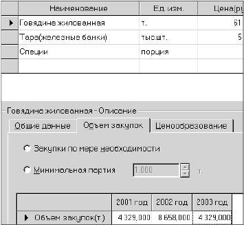 Рис. 8. Диалог «Объем закупок» для «Говядина жилованная»