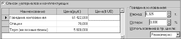 Рис. 7. Диалог «Сырье, материалы и комплектующие»