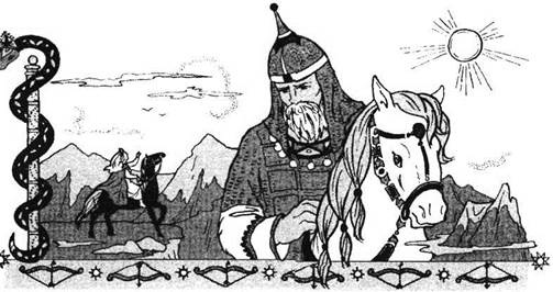 КАК ЖЕНИЛСЯ ВОЛХ НА ДЕВАНЕ, ясноокой перуновой ДОЧЕРИ За победу прославлять стали волхвы могучего Волха, говорить ему стали слова хвалебные. Благосклонно Ирийские боги теперь на юного Волха посматривали. Тут бы Волху нашему и радоваться, да возгордился он вдруг. До самозабвения уверовал Волх, сын Земли, в неземное своё могущество. "Если надо будет, — думал Огненный Волх, — справлюсь разом со всеми царствами, все три мира смогу объять властью своей!" Тут нахмурился Белобог-Белун, тяжело вздохнул, покачал головой. И раздался голос за его спиной — то свои слова сказал в чёрной одежде старик, то пришёл к Огненному Волху Чернобог — Чёрный Змей. — Всей Вселенной завладеть я тебе помогу. Стань ты, Огненный Волх, вместо отца своего повелителем, стань ты первым среди тёмных сил. Будет сын мой, Вий, воеводой твоим, будет нечисть наша подвластна тебе, даже Велес тебе поклонится! — Мудрый Велес мне учитель и друг, — неторопливо ответствовал оборотень, — не добиться силой поклона его! — Зато многого можно добиться хитростью. Ты возьми себе в жёны Параскею-змею, — продолжал свои речи Чернобог, — она в нужный час даст тебе совет. С чёрной силой и с чёрной хитростью завоюешь ты всю Вселенную! — Дело ты говоришь, Чернобог! — наконец решился Огненный Волх. — Стану я повелителем всем Змеевичам и Горынычам, буду знаться я с чёрными силами и женюсь на змее Параскее. Ничего не ответил на это Белобог, словно знал, что придёт ещё его час, словно знал, что битва ещё не проиграна. Ну а Огненный Волх спустился в царство подземное, там сыграл он шумную свадебку с Парас- кеей-змеёй и принялся планы обдумывать, как приумножить ему своё могущество. И пришёл к Волху Вий, воевода подземный, села рядом змея Параскея. * И сказал Вий Волху такие слова: — Ай ты буйный Волх и великий царь! Аль не хочешь ли ты покорить все миры? Аль не хочешь ли ты яблок Ирия? Лишь они дают вечную молодость, силы дают всей Вселенной владеть. Посильнее ты будешь отца своего, по плечу тебе дело этакое. Про себя же подумал злобный Вий: "Пусть добудет для нас Волх яблоки, мы потом его тоже скрутим в бараний рог!" А змея Параскея добавила: — Боем-силою яблоки тебе не добыть. Стережёт их белый дракон Ладон, да и все небесные ратичи в ответе за них. Но зато добыть их можно хитростью, а хитрость есть у тебя, Огненный Волх! И поможет тебе в этом деле Индрик-зверь, всем зверям отец. А я ждать тебя буду с победою. Буду ждать твоего возвращения! Тогда нырнул в подземный ручей Огненный Волх и поплыл прямо к зверю Индрику, тому самому зверю единорогому на четырёх ногах, повелителю всех рек и протоков, что одет в прозрачную чешую. Купался Индрик в глубоком озере, фыркал радостно, головой качал. Увидал он Волха Огненного, увидал его и нахмурился. — Не с добром ты пришёл ко мне, могучий Волх. Уж не хочешь ли ты переделать мир, нам Родом от века завещанный? — Не тебе, Индрик-зверь, мне советы давать. Хочу всем доказать я своё могущество, и тебе не стоять, Индрик, у меня на пути! Покажи лучше подобру-поздорову, как пройти мне тайными тропами, как проплыть мне подземными реками, как попасть в чудесный Ирийский сад. — Молод ты ещё, гордый Огненный Волх, и заносчив ты, Волх, по незнанию. Но пускай свершится твоя судьба, пусть всё будет по воле Макоши. Стань ты рыбой речной и ступай, Волх, за мной. Коль поспеешь — в Ирий попасть сумеешь. И помч