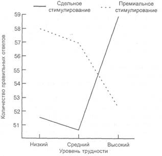 Рис. 6.3. Трудность цели и выполнение задания при двух различных системах стимулирования Адаптировано из статьи J. Mowen, R. Middlemist, and D. Luther. «Joint Effects of Assigned Goal Level and Incentive Structure on Task Performance: A Laboratory Study». Journal of Applied Psychology 1981 66 598-603.