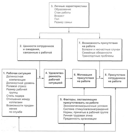 Рис. 7.5. Модель главных детерминантов присутствия сотрудников на работе Из статьи R. M. Steers and S. R. Rhodes, «Major Influences on Employee Attendance: A Process Model». Journal of Applied Psychology, 1978, 63, 391-407.