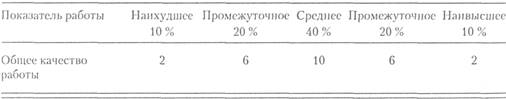 Еще одна разновидность прямого ранжирования — метод парного сравнения, при котором каждый аттестуемый сравнивается с каждым другим аттестуемым. Окончательное ранжирование зависит от того, сколько раз работнику присваивался первый номер. При этом методе аттестующим легче производить ранжирование, так как он разбивает общую задачу на отдельные компоненты — каждый аттестуемый занимает в каждой паре только первое или второе место. В результате пониженных требований, которые этот метод предъявляет к аттестующему, он, как правило, более надежен, чем прямое ранжирование или ранжирование с заданным распределением. Однако он, скорее всего, встретит сопротивление со стороны аттестующего, если только число аттестуемых не будет мало; например, если аттестуемых 18 человек, аттестующему придется произвести более 150 сравнений. Оценочное ранжирование — прием, который позволяет избежать некоторых недостатков прямого ранжирования за счет комбинирования ранжирования с выставлением оценок (Miner, 1988). Работник ранжируется по какому-либо аспекту работы, например по «способности выполнять новые задачи», а затем оценивается по этому аспекту как «отличный», «хороший» и так далее до «плохого». Оценочное ранжирование дает некоторое представление как об абсолютном, так и об относительном соответствии работника производственным требованиям, но по этой разновидности ранжирования эмпирические данные отсутствуют.