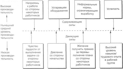 Рис. 15.1. Квазиустойчивое равновесие производительности труда Примечание: В аналитическом методе Левина длина линий варьирует в зависимости от величины различных действующих сил