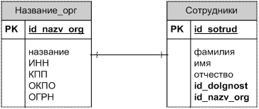 Рис. 50 Связь отношений «Название_орг» и «Сотрудники»