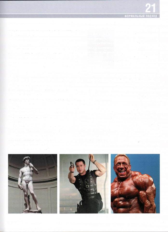 Красивые пропорции и эстетика тела — вещь вообще очень спорная. Как говорится, на вкус и цвет... К тому же телесная красота — это все-таки данность, она в большей степени соз дается благодаря сперматозоиду и яйцеклет ке, нежели с помощью штанг и гантелей. Да, можно увеличить мышцы, можно сжечь жир и даже этот ваш отвратительный горб на спине тоже можно убрать, но как разобраться с про порциями? Как удлинить короткие ноги? А рас ширить чрезмерно узкие плечи? Укоротить длиннющую шею? Выпрямить кривые ноги? Красивым, в том числе и телесно красивым, нужно родиться, и зачастую физическая фор ма тут совсем ни при чем. Красивый человек в хорошей форме просто станет еще привле кательней, но и без регулярных тренировок к
