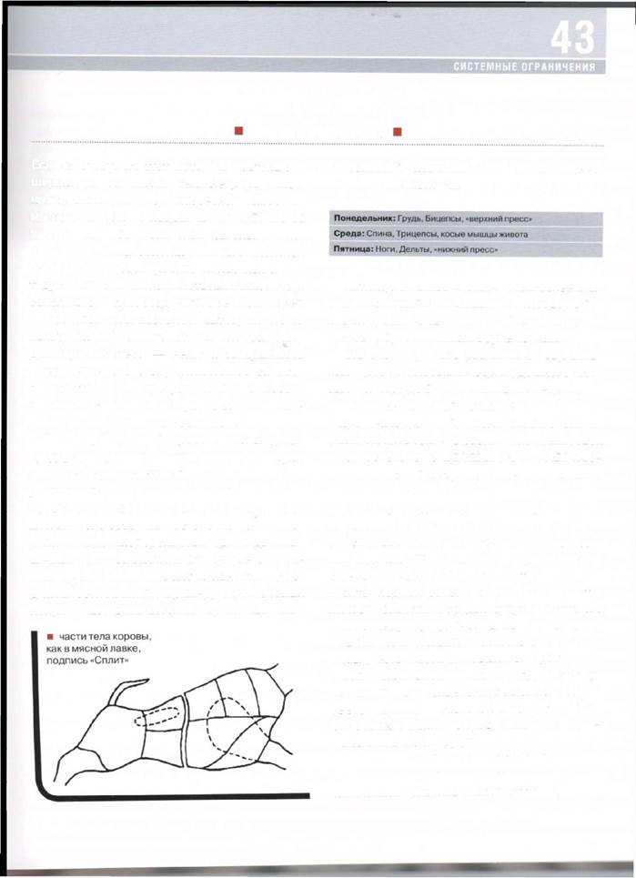 0•Гармоничность. Нужная мне система должна быть завершенной, из нее ничего не должно выпадать! Помните определение в предыду щей главе — «гармоничное сочетание силы... выносливости, гибкости...» итак далее. Вот это все должно в настоящей системе быть. С этой точки зрения методика, в которой присутству ют только гибкость или тренировка «мышц ко ра», также ущербна, как и та, в которой нет ни чего кроме развития силы. 0•Клиентоориентированность. Это сложноеслово из словаря наших управленцев по боль шому счету отражает все вышеперечисленное. Однако самое главное — это возможность пе рекраивать систему под любого клиента — больного, здорового, очень здорового, слабо развитого или невероятно привлекательного. 0•Соответствие определению. Я взял заоснову одно из высказывания Алвина Косгроу: «Профессиональная программа тренировок должна включать в себя тренировку гибкости, упражнения с отягощением, работу на вынос ливость и тренировку кора». Что такое «кор», выузнаете чуть позже. Это очень важная штука, но, к сожалению, пока конкретики в том, что же именно это такое и как это тренируется, не так много. В последующих главах я попробую све сти все мне известное воедино. Ну что ж, теперь, вооружившись понимани ем, приглашаю вас слегка по-новому взглянуть на уже знакомые вам методики. Заранее прошу прошения у тех, на чьи тренировочные взгляды 0ябезжалостно наехал, — честное благородное слово, не со зла!
