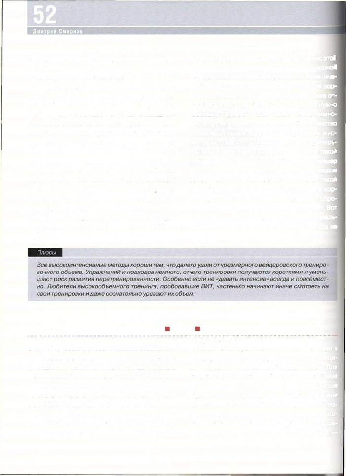 Это одна из самых незамысловатых их про грамм. Со временем авторы PDF серьезно рас ширили методические возможности своего ме тода, введя туда такие интересные штуки, как дыхательные становые тяги, суперсеты "Compound Aftershock", методы постактивации и прочие приятности. Холман и Лоусон одни из немногих убежденных культуристов, пытавши еся задумываться о своих тренировках, а не только верить. Судя по фотографиям авторов, у них это неплохо получилось. Судя по расписа нию их нагрузок, многое так и осталось недора ботанным, например вот это: