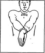 Шаг 3. Затем слушатель должен вывернуть ладони внутрь и расцепить первые два пальца, чтобы они смотрели вверх (рис. 2). Продемонстрируйте.