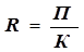 де К – повна сума інвестицій у об’єкт, грн; Пt – чистий прибуток у році t, грн; Аt — амортизаційні відрахування на реновацію у році t, грн; Пt + Аt — чисті надходження у t -ому році, грн. Переваги використання такого показника полягають у його простоті. Недоліком є те, що в ньому не враховується динаміка витрат та результатів після того, коли проект окупився. Відповідно може мати місце переоцінювання досягнення позитивних результатів у перші роки використання інновацій, інвестицій, які можуть не принести більшого сумарного ефекту порівняно з варіантом, який забезпечує стабільний прибуток на весь період його функціонування. У цьому зв’язку показник Ток використовується як обмеження при виборі варіантів із тим, щоб фактична величина Ток не перевищувала його нормативного значення. Цей метод оцінює не прибутковість, а ліквідність проекту. Тому він застосовується ще у банківських розрахунках, коли встановлюється чіткий термін повернення кредиту. 3) Рентабельність (проста норма прибутку), R. Розраховується як відношення прибутку нормального року експлуатації об’єкту до повної суми інвестицій, включаючи передвиробничі витрати