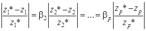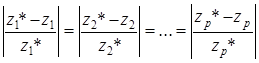 Шаг 4. В систему ограничений вводятся p -1 дополнительных уравнений, устанавливающих равенство относительных отклонений частных критериев от их экстремальных значений: