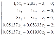 В компромиссном решении количественные значения частных критериев существенно отличаются от их экстремальных значений (таблица 2). Чтобы изменить их количественное соотношение, т.е. улучшить (ухудшить) некоторые частные критерии за счет ухудшения (улучшения) других, введем весовые коэффициенты для их относительных отклонений. Пусть b1 = 1, b2 = 0,5 и b3 = 1. Это означает, что критерий f 2 = z 2 является менее важным и может быть ухудшен по сравнению с другими показателями оптимальности. Тогда для получения компромиссного решения дополнительное ограничение (22), определяющее равенство отклонений первого и второго критериев, следует заменить следующим ограничением, полученным по формуле (13):