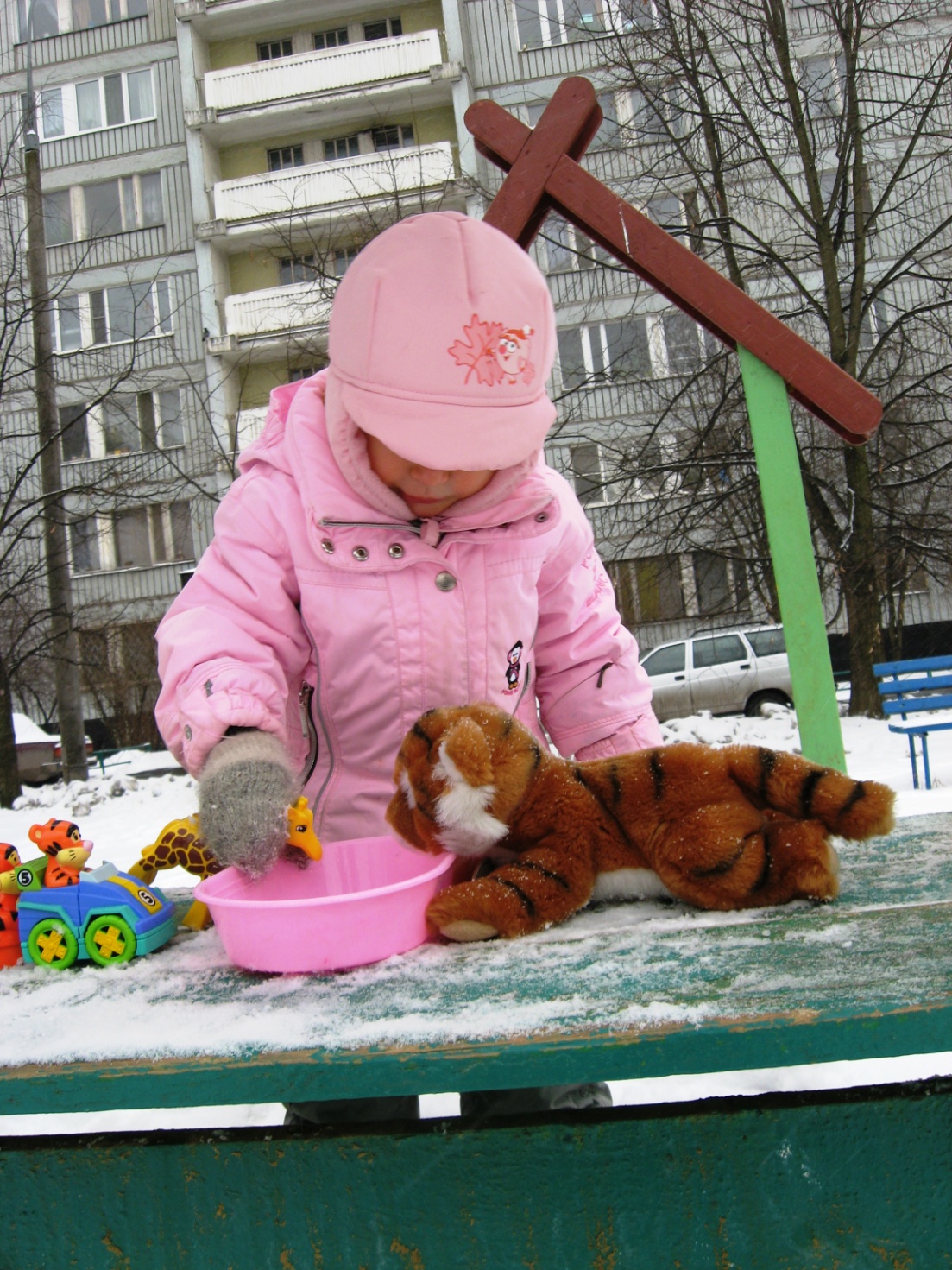 После игр с волком зайцепоросенок устал, забрался на горку, где есть счеты. Давай, - говорит, - посчитаем. Посчитали. При этом Ксеня увидела, как ворона внизу что-то клюет. С радостным криком «Ворона-ворона!»заторопилась спускаться по лестнице, немножко оступилась, покачнулась, и, забыв выйти из образа, отчаянно кричит: «Волк, волк, помоги, дай ручку!» J J J