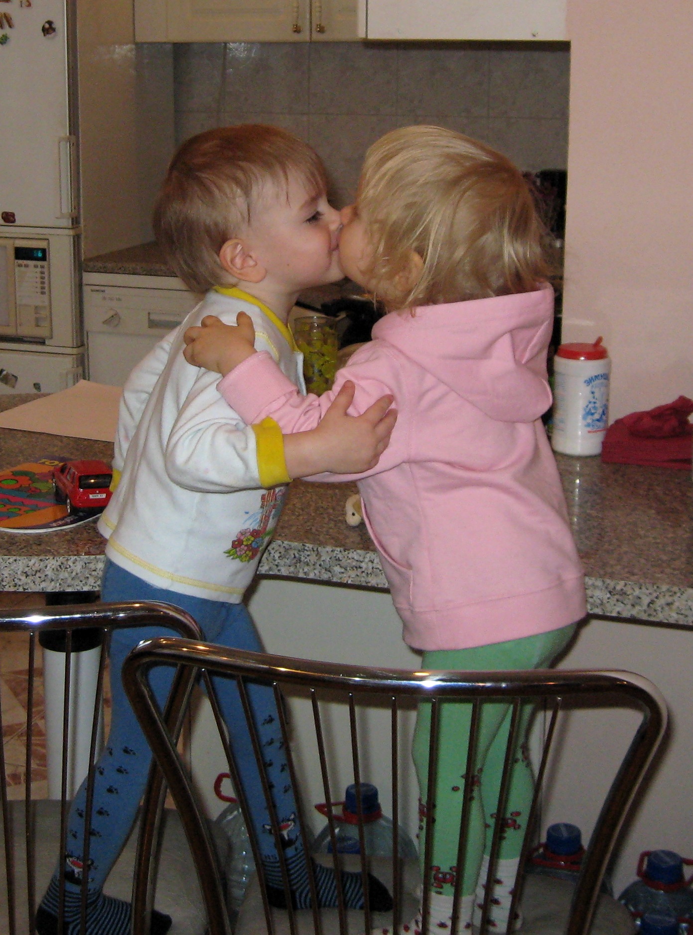 - Алё, Марк, здравствуй! Да! Да! Я дома! Да! Да! Я играю. С мамой, с папой в бассейн ходила. Приходи в гости. С Наташей. Грушу купите! Гулять не надо. Будем играть. Тем временем я захожу в ванную вымыть руки. Ксеня следует за мной. Но… как только она зашла в ванную, резко «оборвалась связь». Кисюля, как талантливая актриса, сначала удивлённо ойкнула, потом отчаянно взывает: «Алё, алё, не слышу! Алё! Алё J J J В 1 год и 10 месяцев: Ксеня знала все буквы, кроме ё, ь, ъ, й, э, ы. Читала нижеприведённые слова. Чётко, по слогам, произносила свою фамилию: СУ-ДА-КОВА! Причём, всегда очень бравурно, поскольку за это её все хвалили. J J J Называла имена всех своих родственников и знакомых. 13.02.08. Пытаясь прививать Ксене чувство рифмы, читаю стихотворение «Снежный бой»: