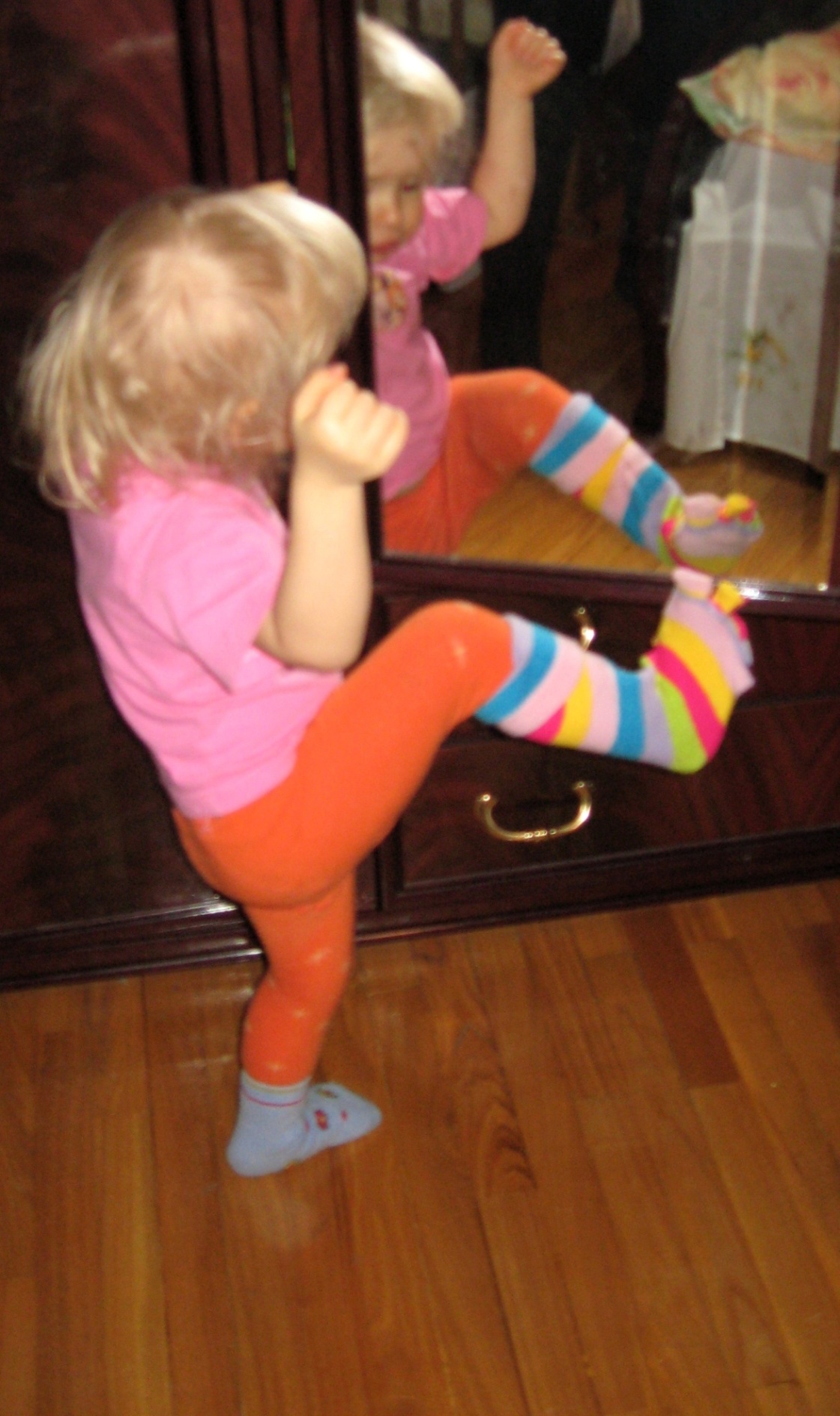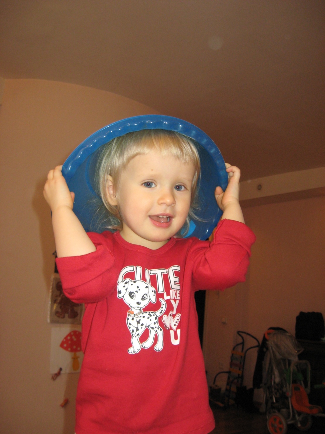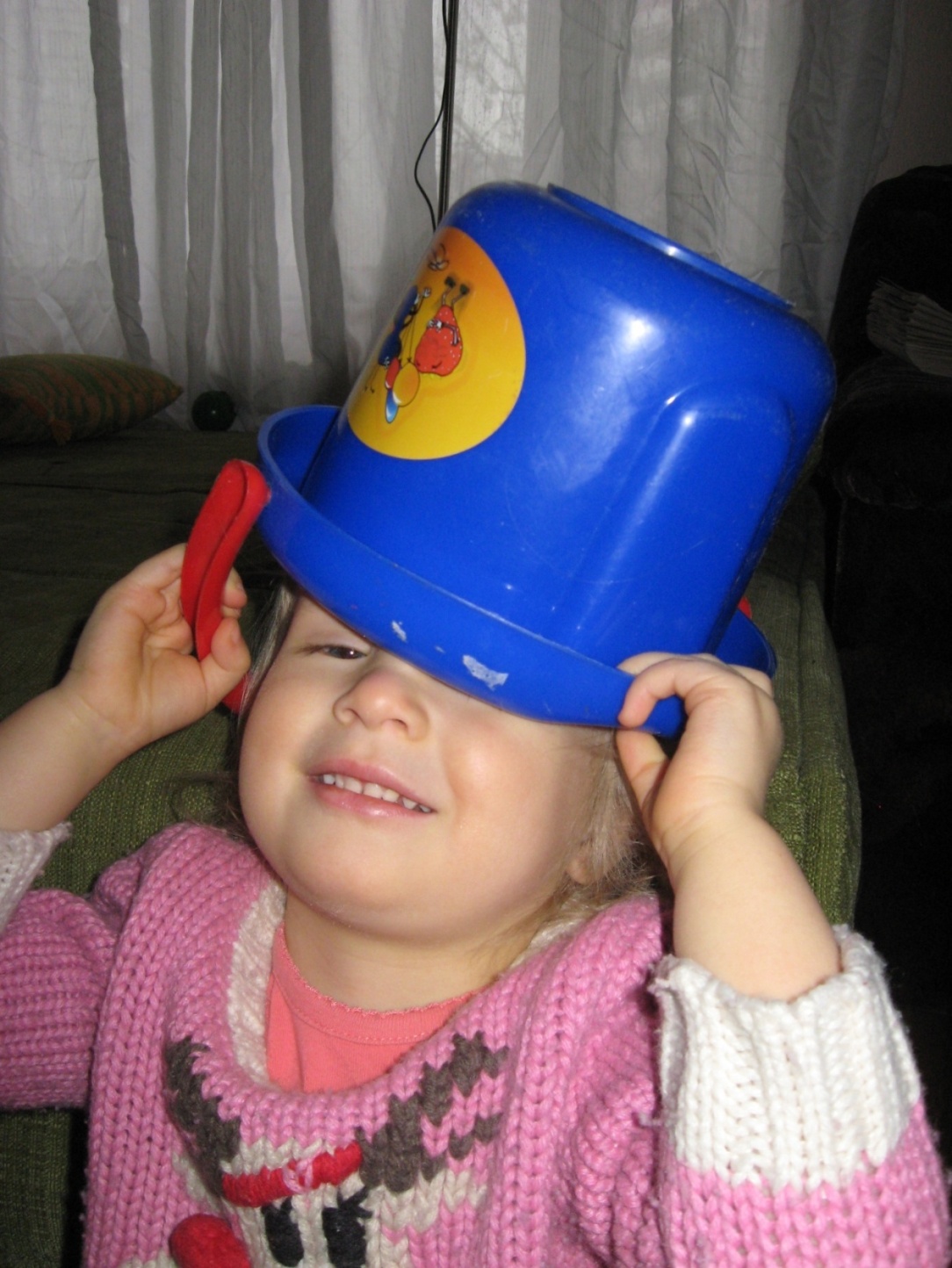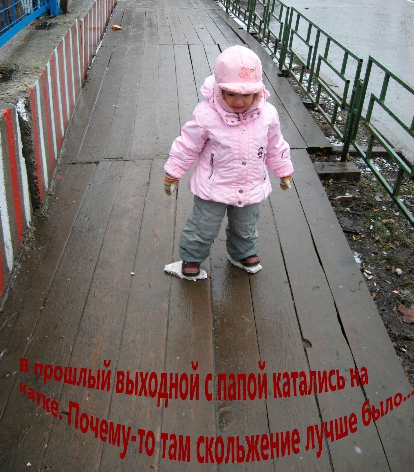 Лена откроет дверь. Я тем временем снимаю с Ксени шапку. А ей хочется, чтобы это сделала мама, поэтому она кричит: «Ой, больно мне шапку, больно! Не снимай! Нельзя!» J J J