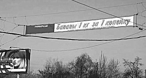 Рис. 32 Реклама в магазине: «Полпокупки в подарок». Это обязательно привлечет клиентов. Хотя данный бонус применяют не в случае покупки одной вещи, а делают бесплатной третью вещь после покупки двух (рис. 33). Реклама компании, осваивающей нишу цветочных магазинов, – клиента, который долгое время был в коучинге у Андрея Парабеллума: «10 роз за 149 рублей». Это пример мощнейшего оффера, причем накануне 8 Марта. Недостаток – нет дедлайна (рис. 34). Пример хорошего оффера: «1 кг бананов всего за 1 копейку». Сразу бросается в глаза. Хотя бананы по такой цене продавали всего один день и ограниченное количество килограммов (рис. 35).