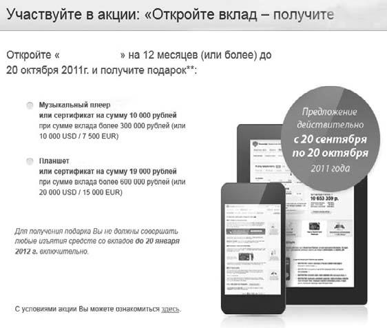 Рис. 38 Отличная акция банка «Тинькофф»: «Откройте вклад на 600 000 рублей и получите в подарок iPod». Сразу хочется стать клиентом этого банка (рис. 39).