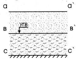 аа´ - зона аэрации; вв´ - зона насыщения; сс' – водоупорный слой Рисунок 1 – Схема залегания грунтовых вод