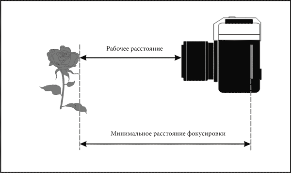 Объектив фотокамеры фокусируется от фиксированного минимального расстояния до бесконечности. Минимальное дистанция фокусировки (рис. 1.13) – это самое меньшее расстояние до объекта съемки, при котором объектив обеспечивает резкое изображение на матрице, то есть еще фокусируется. Если вы будете снимать предмет на расстоянии, меньшем минимального расстояния фокусировки, картинка получится нерезкой. Чем меньше минимальное расстояние фокусировки у объектива, тем больше у вас возможностей.