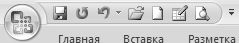 Панель быстрого доступа расположена слева вверху интерфейса, правее кнопки Office (рис. 2.13).